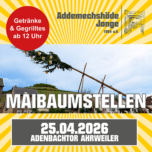 Die Addemechshöde Jonge stellen ihren traditionellen Maibaum am Adenbachtor in Ahrweiler auf.